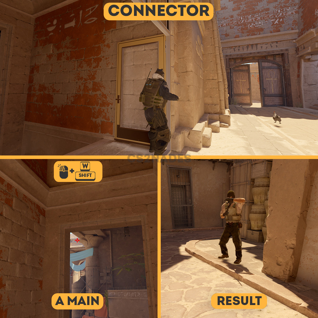 Esta lineup de flash de Connector catches players off guard at A main on Anubis no CS2. On lado CT, this flash is great para retakes or aggressive peeks to catch attackers off guard. The throw uses a left-click + shift + W (walk throw) technique, so practice the position and timing in a private server before your match. Includes posição de mira, guia em vídeo, and comando setpos.