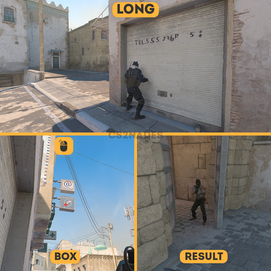 This flash lineup from Long blinds defenders at box 2 on Dust2 in CS2. On CT side, this flash is great for retakes or aggressive peeks to catch attackers off guard. The throw uses a left-click technique, so practice the position and timing in a private server before your match. Includes crosshair placement, video guide, and setpos command.
