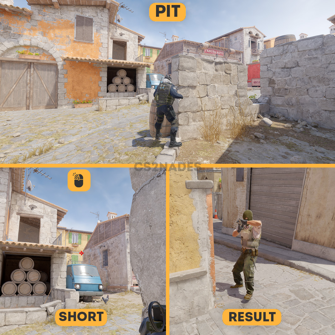 This flash lineup from Pit flashes short on Inferno in CS2. On CT side, this flash is great for retakes or aggressive peeks to catch attackers off guard. The throw uses a left-click technique, so practice the position and timing in a private server before your match. Includes crosshair placement, video guide, and setpos command.