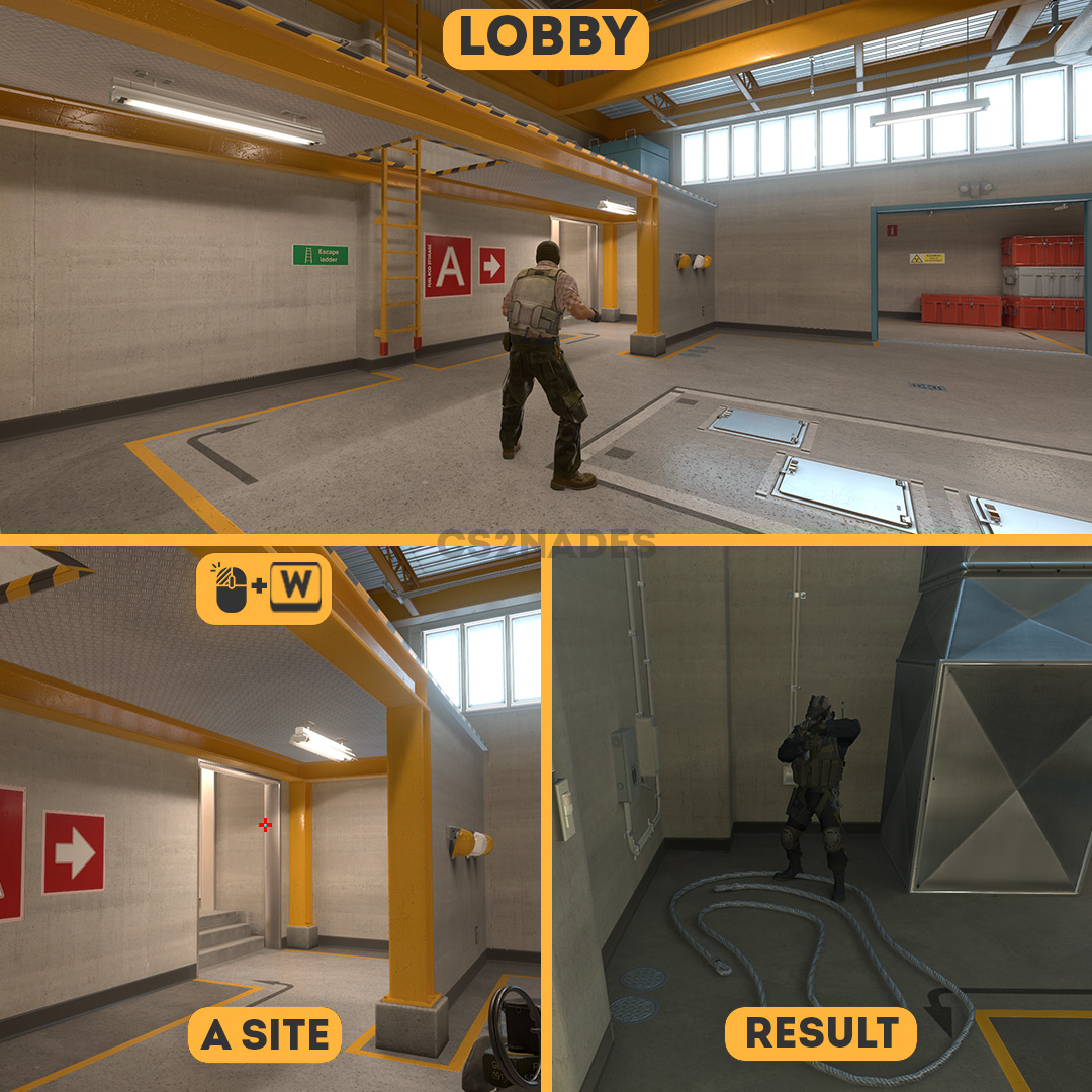 This flash lineup from Lobby catches players off guard at hut 2 on Nuke in CS2. On T side, use this flash to entry-frag or support a teammate pushing into position. The throw uses a running throw technique, so practice the position and timing in a private server before your match. Includes crosshair placement, video guide, and setpos command.
